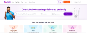 Users create profiles and upload resumes, visible to recruiters. Search filters include location and salary. Foundit offers career resources, salary comparisons, and interview tips.